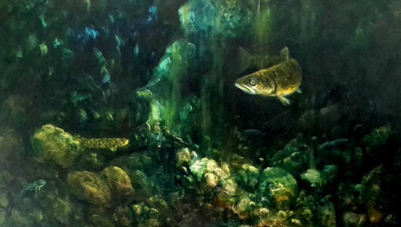 “Bullies Beneath the Inangahua”, 760 x 910mm, oil on Canvas, Sold