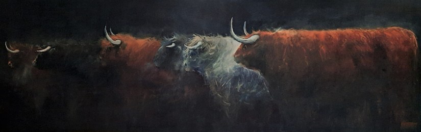A Young Girls Dreamsold Highland Paddock Mates, Oil on Canvas, 910x650mm $1800Sold Untitled in Blue, Oil on Canvas 1220 x 910mm $3200 (The blue is a little more navy than this image shows)The Workers , Oil on Canvas 1220 x 910mm $3,800Highland and Mates Oil on Canvas“Blue in Grace ” oil on Canvas , 1520 x 760 mm $3200Two Interlopers, Oil on Canvas 1220 x 915 $3800sold Lambing Shepherd 152x 121 cm oil on CanvasSold Many faces of the Highland oil on canvas 1520x560mmHighland Bullsold The Hunter and the Hunted, Oil on Canvas 1520 x 910 mmsold “Old Before Their Time” Oil On Canvas,1010 x 1520mm