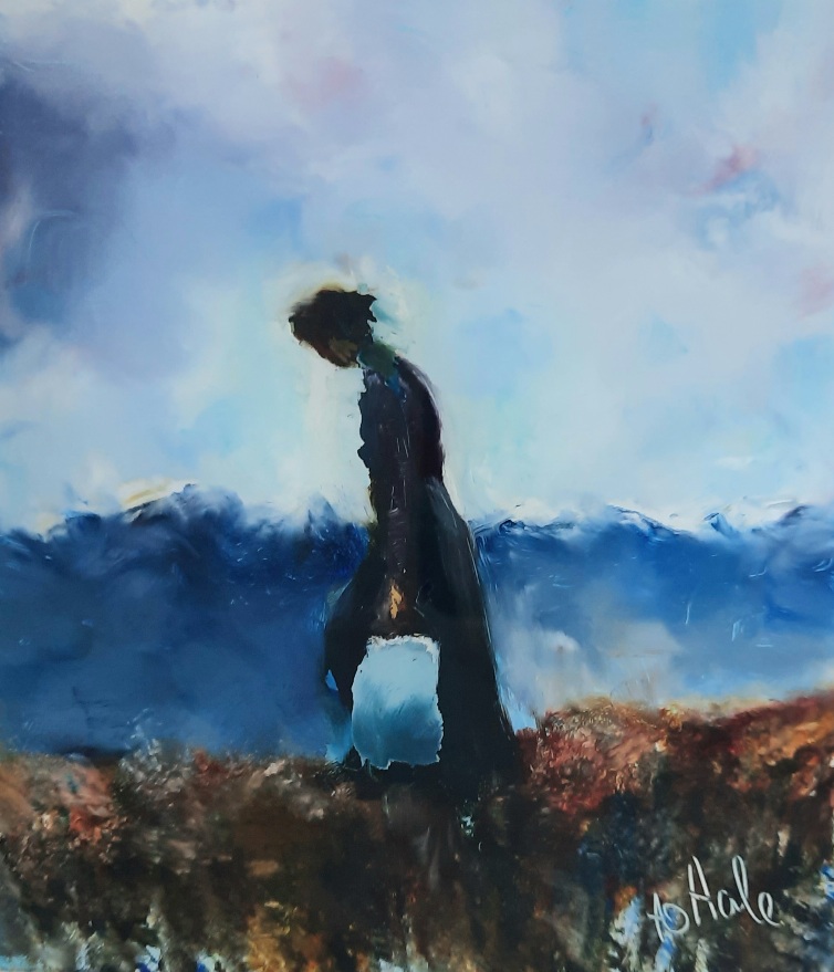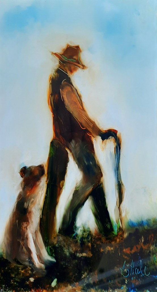 sold Striding Out oil on glass 140 x 100mm $250Image may show some reflection.