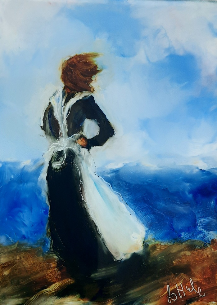 sold Let it Begin! no 2(Lady in Red Series)oil on glass image may show some reflection 242×133 mm $360