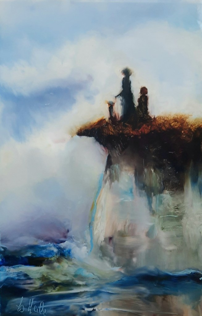 sold“Memory From The Past” oil on Glass 472 x 300 mm .$720