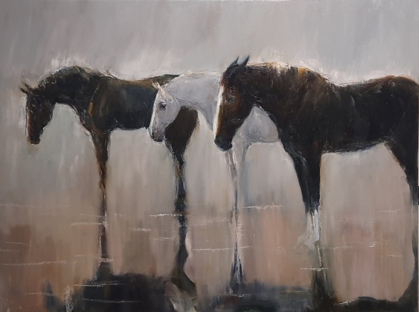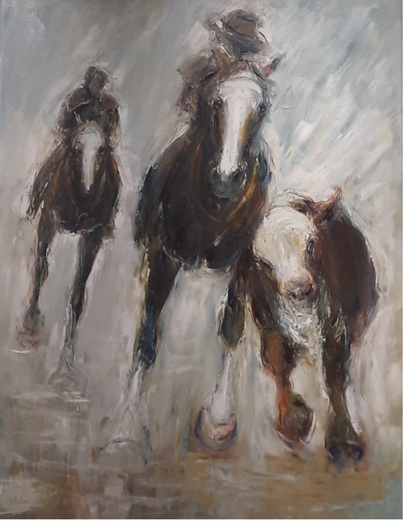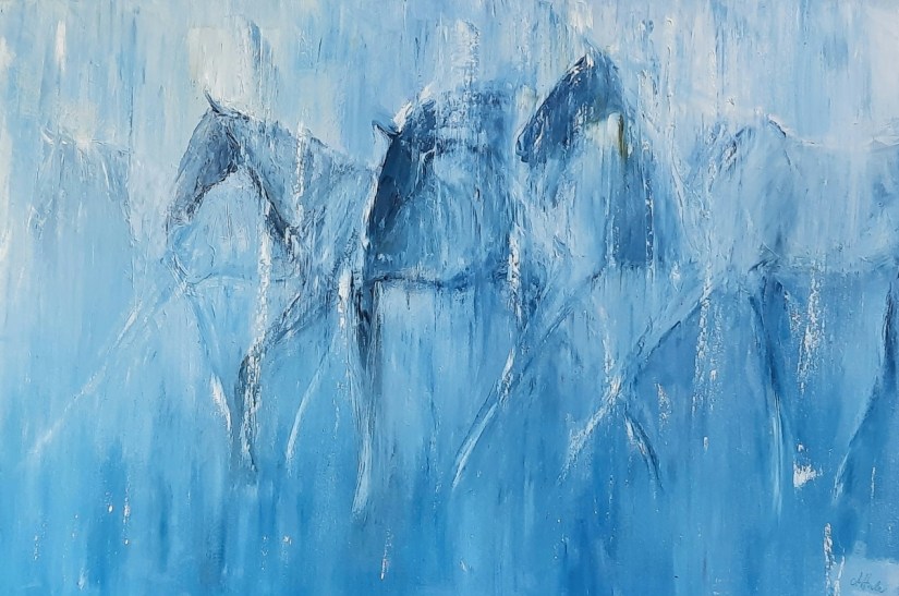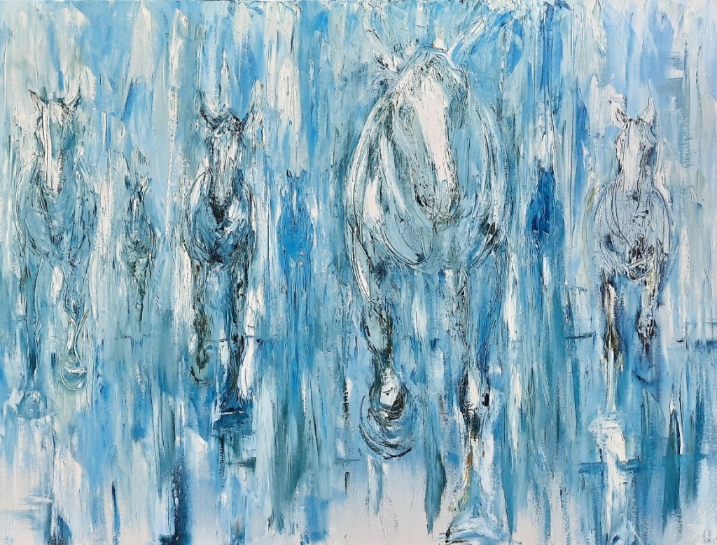 Sold Horse Muster in Blue Oil on Canvas 991x1210mm $3000
