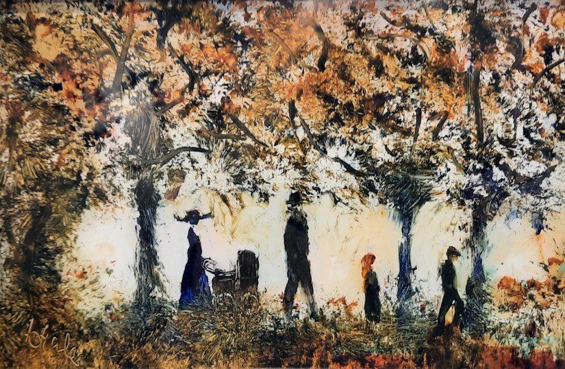 soldThe Motley Crew 2 oil on Glass 335 x 192mm $550