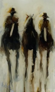web stockmen in minature oil on glass 110x70mm